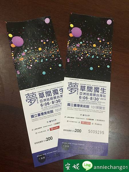感恩貴人送我們票讓我們能夠來看 票上印的就是草間彌生創作裡著名的圓點 很值得收藏